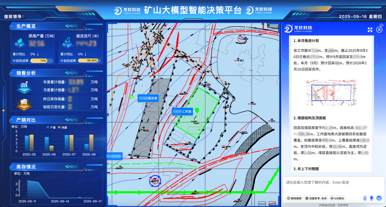 该平台实现了数据、图形和模型的一体化处理,支持煤矿地质、测量、通防、机电、生产等专业自动成图、同步建模和时空信息的高度共享和动态处理,有效破解了长期困扰行业的包括地质建模与更新在内的“卡脖子”关键技术难题。系统兼具的技术先进性与场景实用性,创新实现了时空信息云服务,在实现时空信息云服务的同时,深度融合了雷火电竞体育官网科技多年积累的煤矿GIS专业化应用成果,不仅全面推动了矿山安全生产业务的数字化转型,更以高精度三维模型为支撑,为煤矿智能采掘、智能通风和灾害预警提供了坚实的技术底座与可视化决策平台。